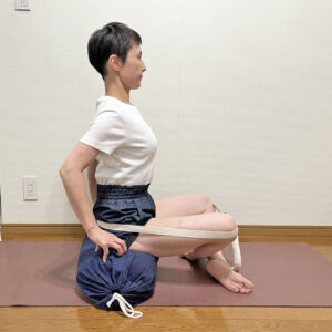 今回は、股関節が硬く、骨盤を立たせることが苦手な方のために、ボルスターの上に座っておしりを高くしてアーサナを行います。
