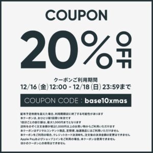 20%OFFになるには、クーポンコード base10xmas をご購入の際に入力してくださいね。