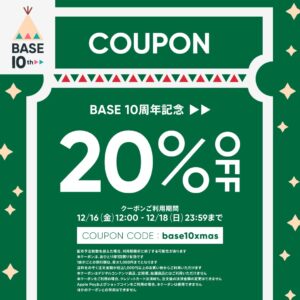 BASEのお店限定ですが、12月16日(金)~18日(日)までの3日間、全商品20%OFFになります。