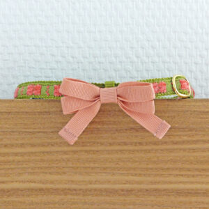 今回、とてもかわいらしいリボンに出会いまして、たまには、ブレード+ビーズの組み合わせではなく、リボン+リボンの首輪も良いな~~と思った次第です。