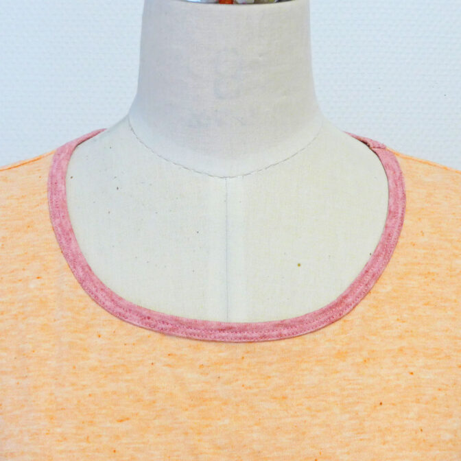 衿ぐりのパイピングを身生地とは違う色にしてアクセントを付けました。
