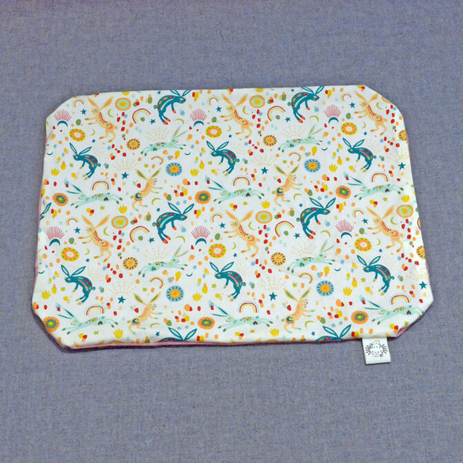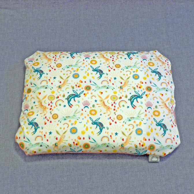 外カバーは、上側にART GALLERY FABRICSのコットン100%の生地を使用しております。下側は、オーガニックコットン100%のパイル生地を使用しております。どちらも気持ちの良い肌触りです。